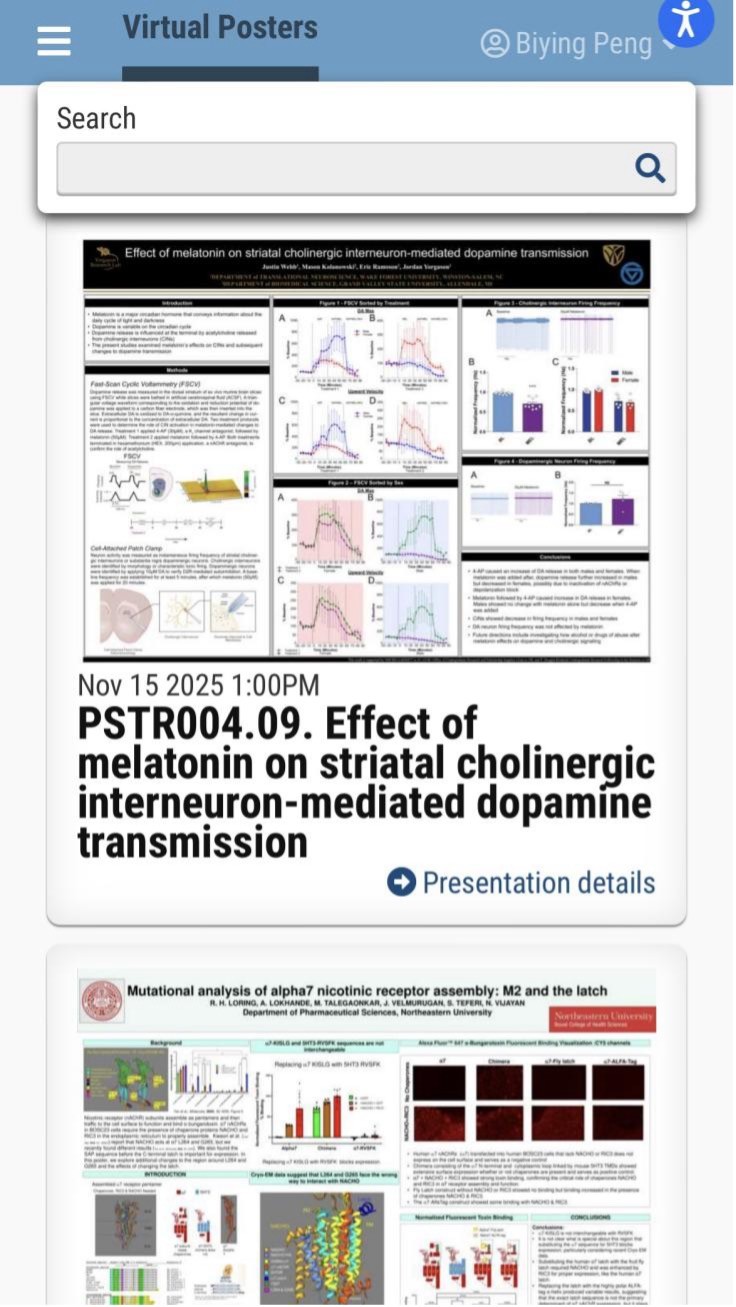Figure. Screenshot of the SfN 2025 virtual poster platform, illustrating the asynchronous engagement format through which the meeting content was accessed.